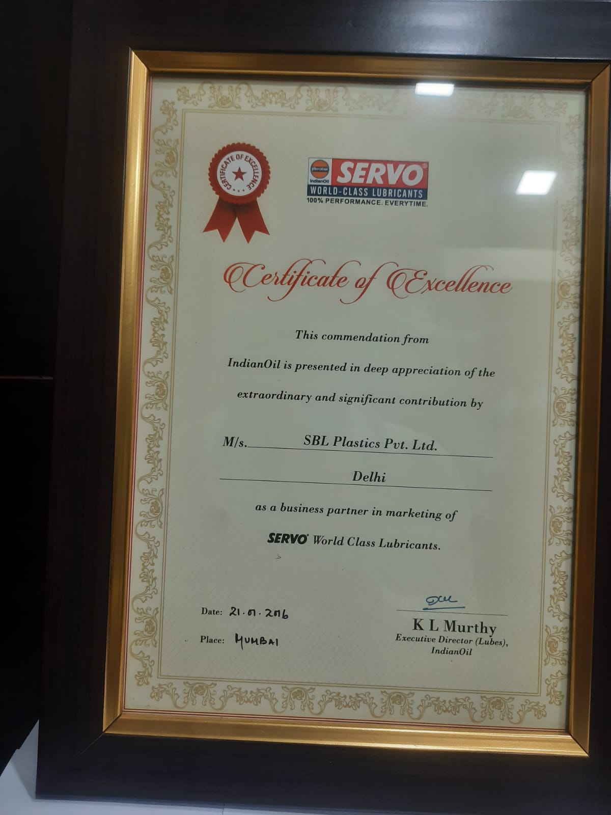Appreciation Awards from Indian Oil Corporation Ltd for delivering high Quality Products in a timely manner